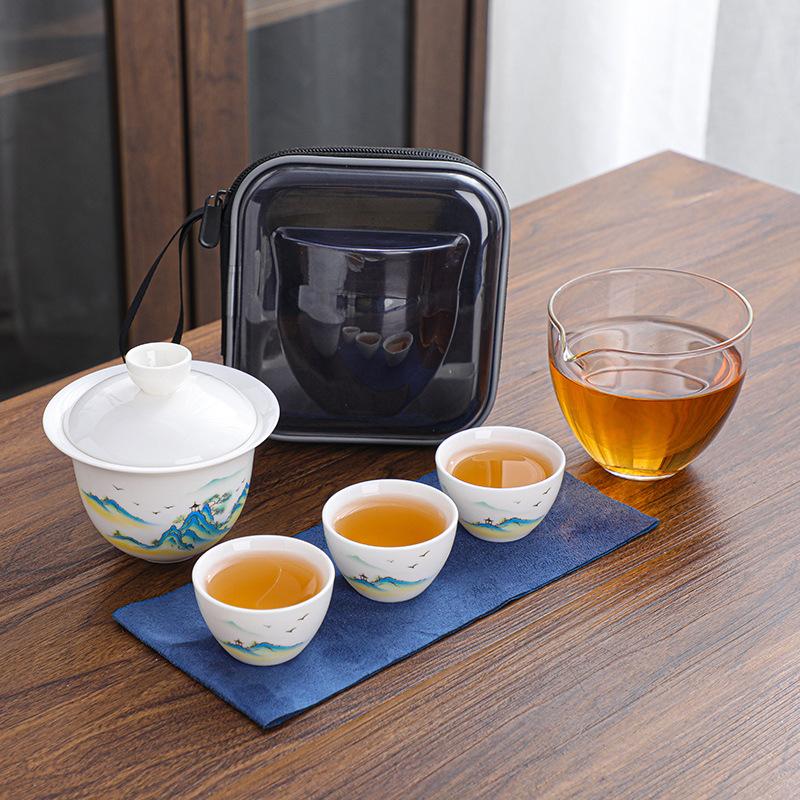 Керамический чайник Гайвань с 3 чашками Чайный сервиз для дома и офиса Портативный дорожный чайный сервиз Питьевая утварь