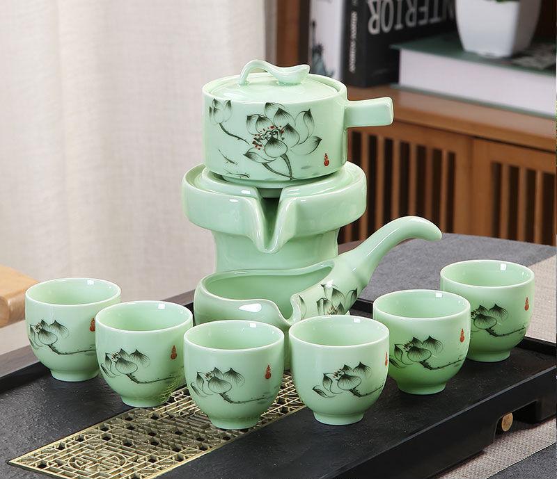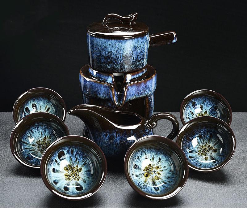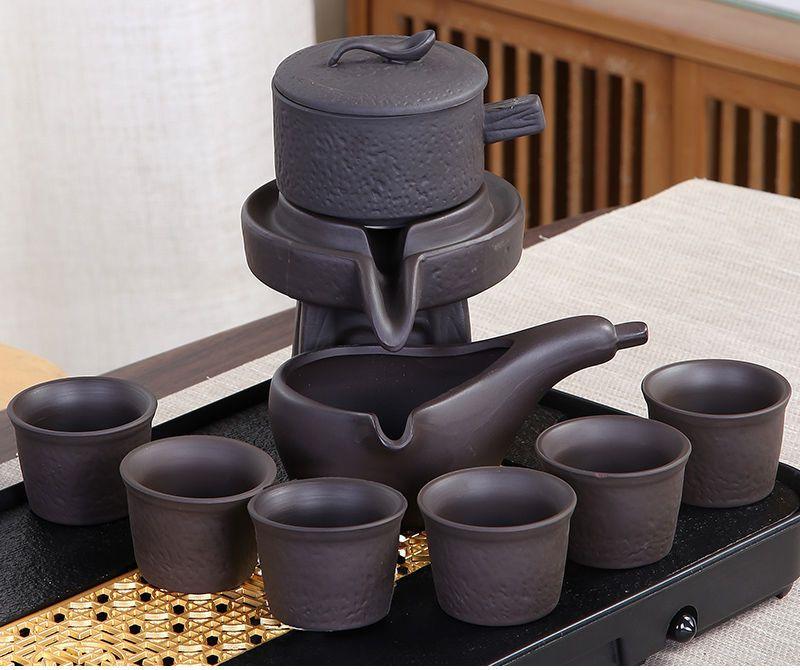 Набор из 8 предметов, полуавтоматический чайный сервиз, китайский керамический чайный сервиз из фиолетовой глины, чайная чашка, набор для заваривания чая в стиле кунг-фу