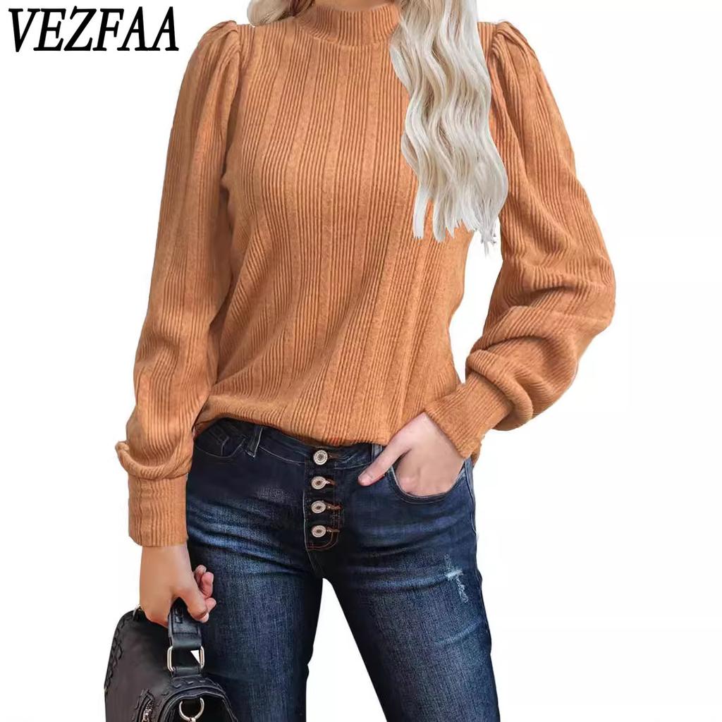 VEZFAA Женская мода повседневная весна осень однотонный принт длинный рукав полуводолазка пуловеры и длинные рукава