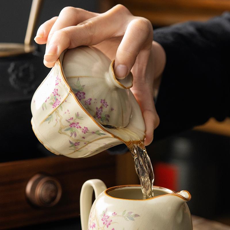 Ретро Печь Жу Чайница Керамическая Саньцай Крышка Чаша Чайник Гайвань Может Поднимать Посуду для Кунг-фу