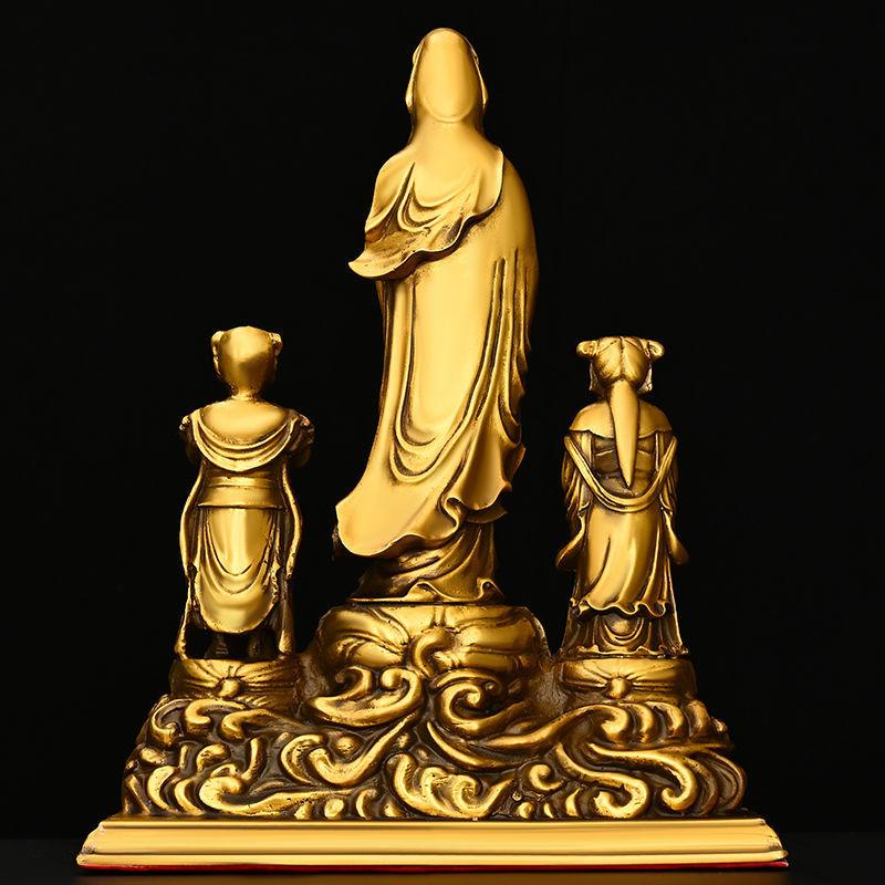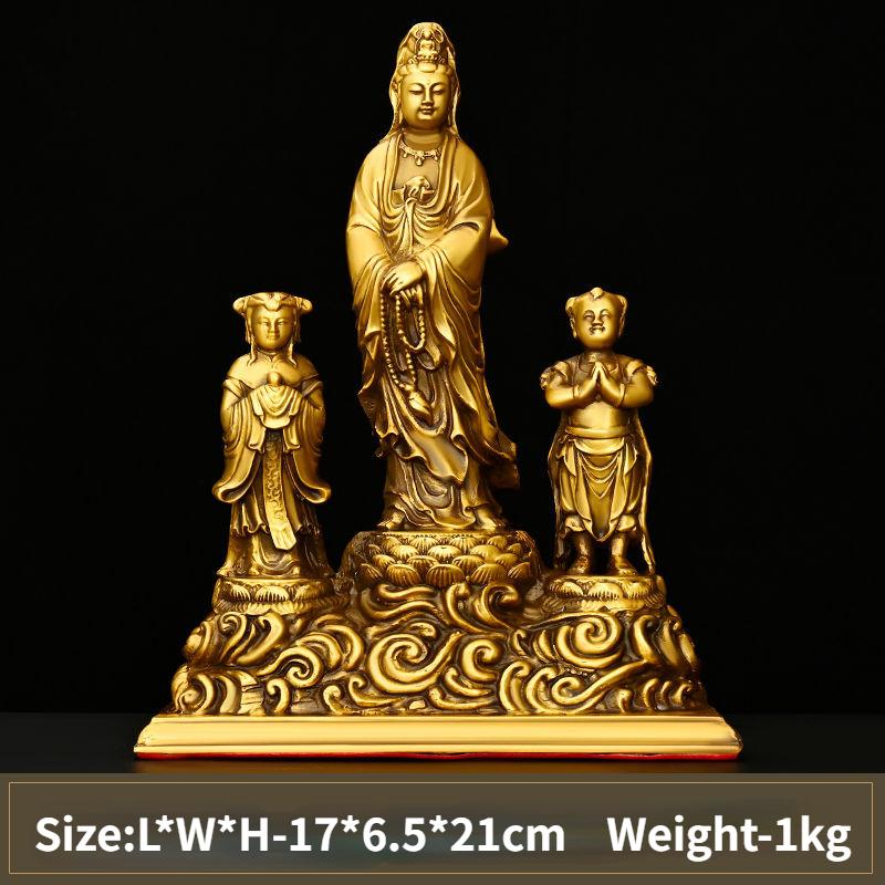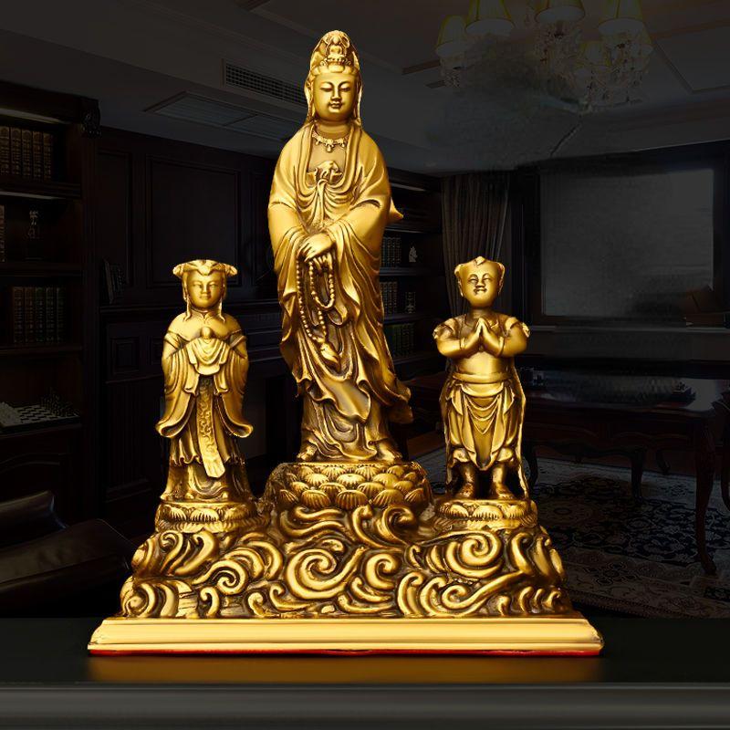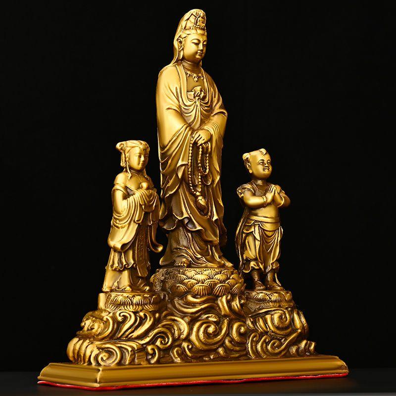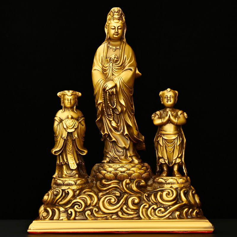 Чистая медь Гуаньинь Бодхисаттва Украшение Мальчик и Девочка Наньхай Гуаньинь Бодхисаттва поклоняется медным статуям Будды дома