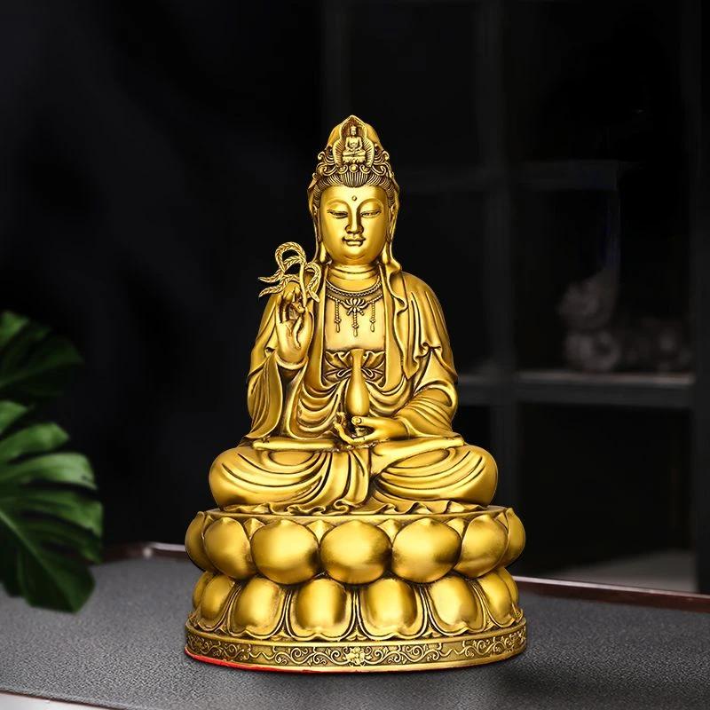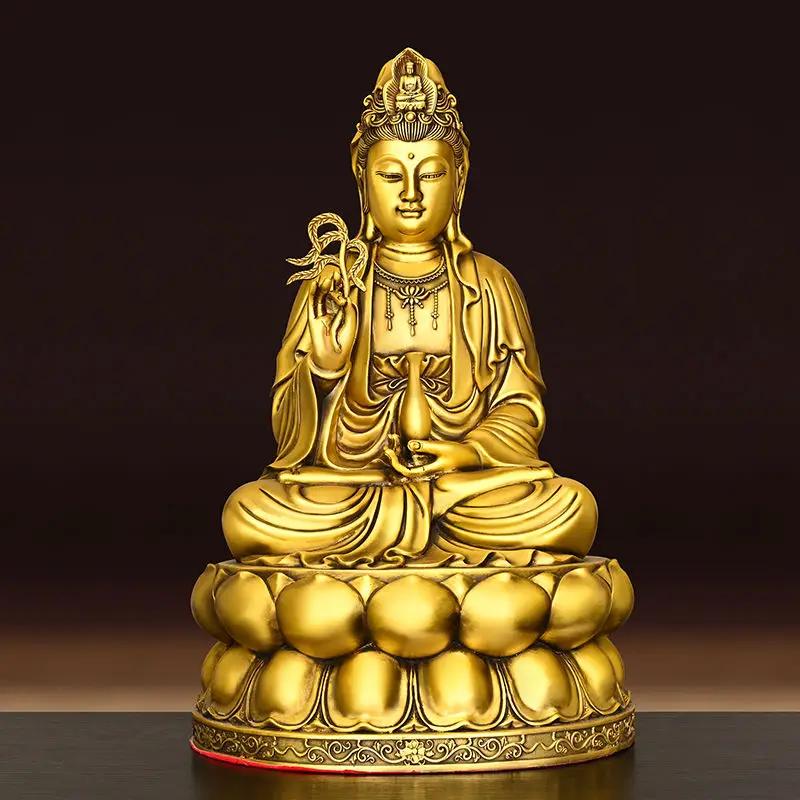 Чистая медь Гуаньинь Бодхисаттва Украшение Сидящая Лотос Богиня Гуаньинь Дома Подношение Статуи Гуаньинь В Буддийском Храме