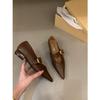Туфли на плоской подошве с острым носком черного цвета, женские летние туфли на низком французском каблуке, темпераментные туфли Мэри Джейн из кожи