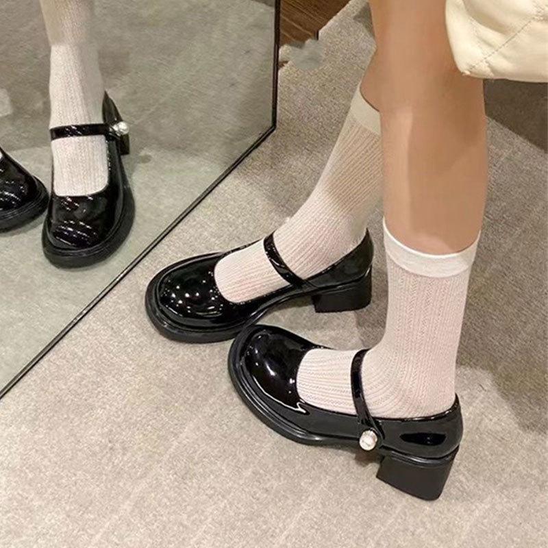 Туфли Мэри Джейн на высоком каблуке женские французские ретро белые кожаные туфли на толстом каблуке легкие туфли-лодочки
