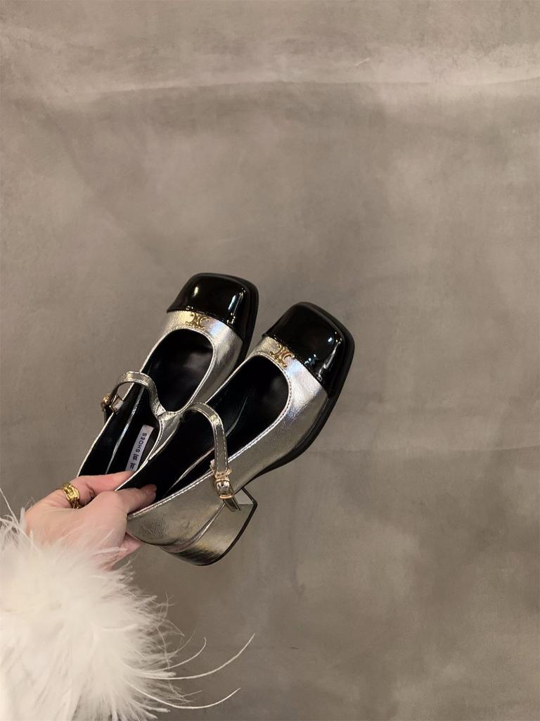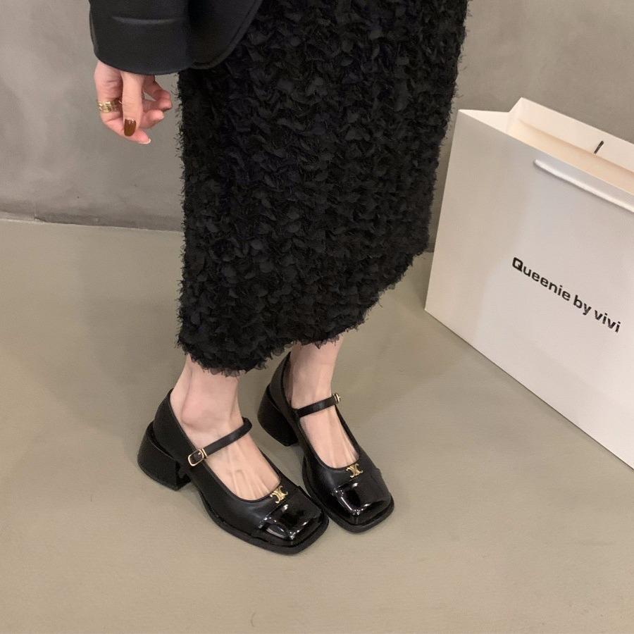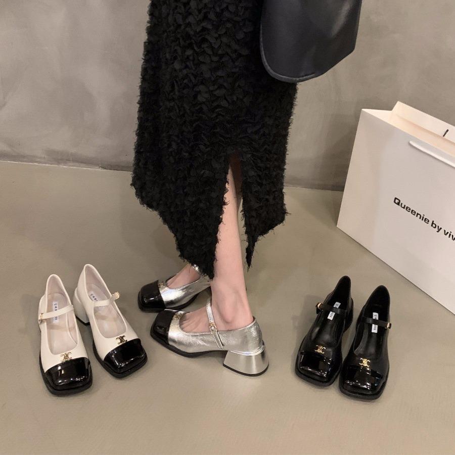 Французские туфли Мэри Джейн на среднем каблуке, серебристые, маленькие кожаные туфли, женские туфли, весенние, черные, маленькие, ароматные, маленькие кожаные туфли