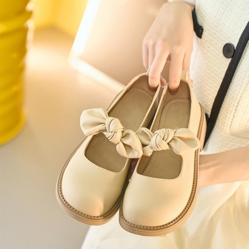Японские маленькие кожаные туфли женские весенние и летние универсальные мягкие подошвы с одной педалью французские банты Мэри Джейн одинарные туфли