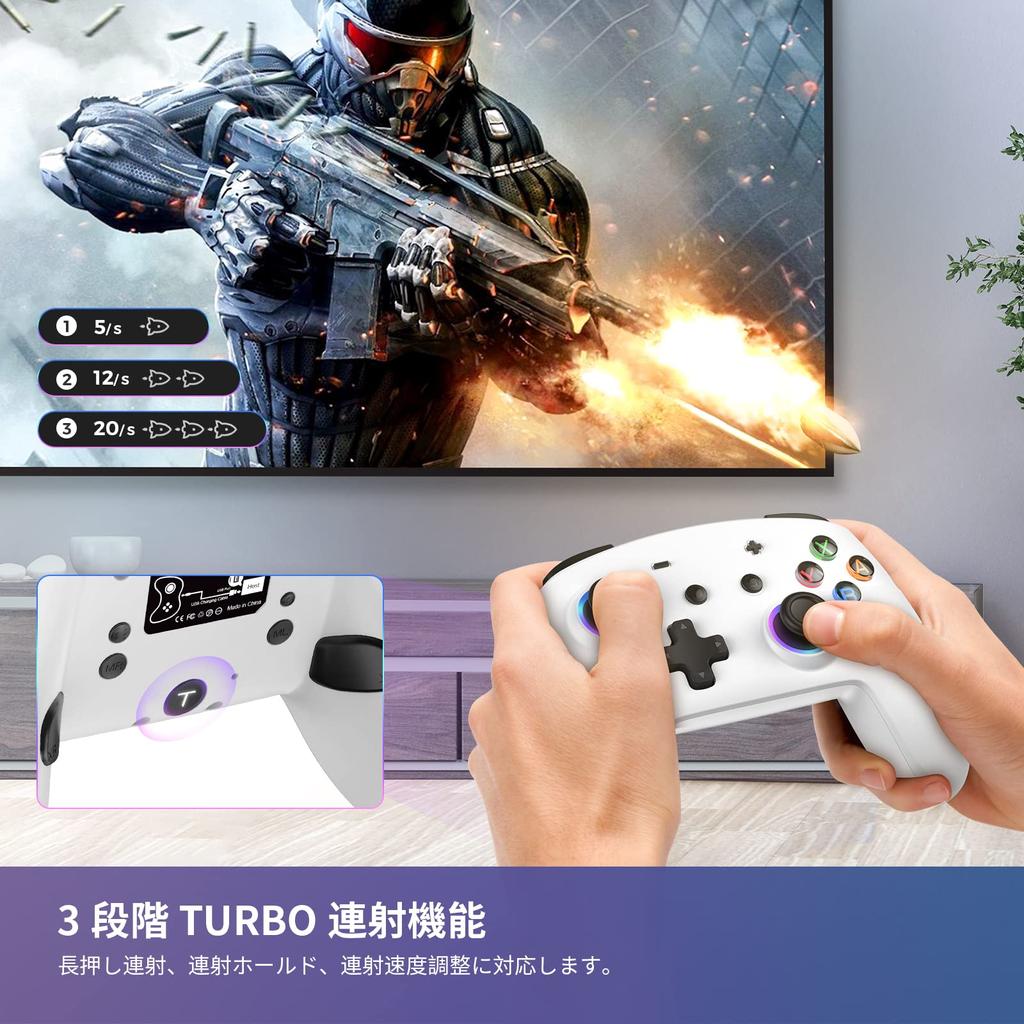 Switch Wireless Bluetooth Double Gyro Continuous Fire Wake Long Time Совместимость с Switch Pro White Контроллер, Подключение, Вибрация, 6 осей
