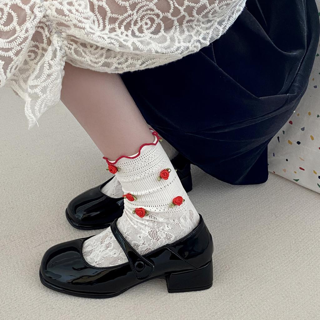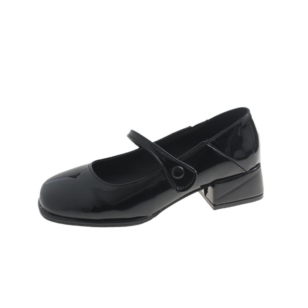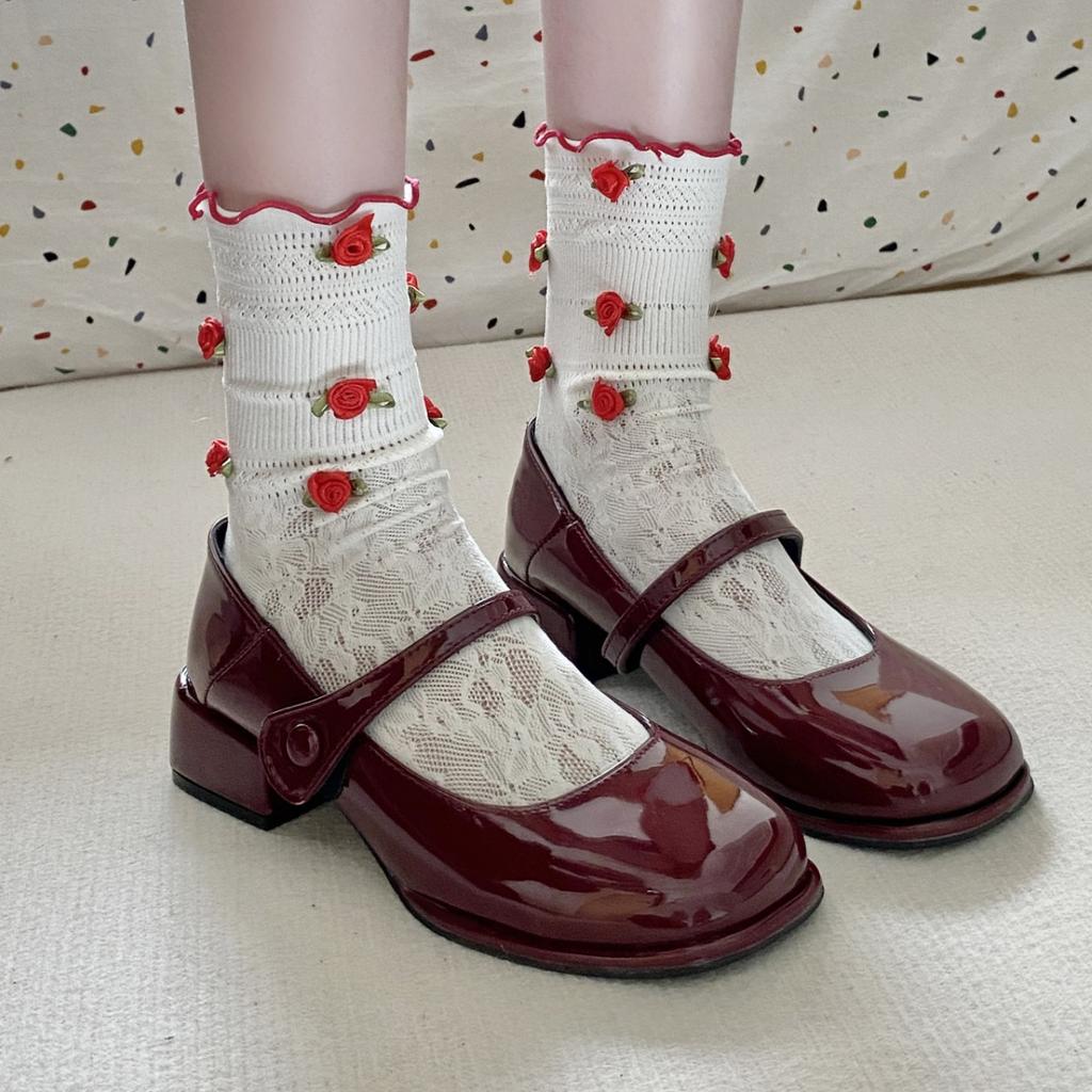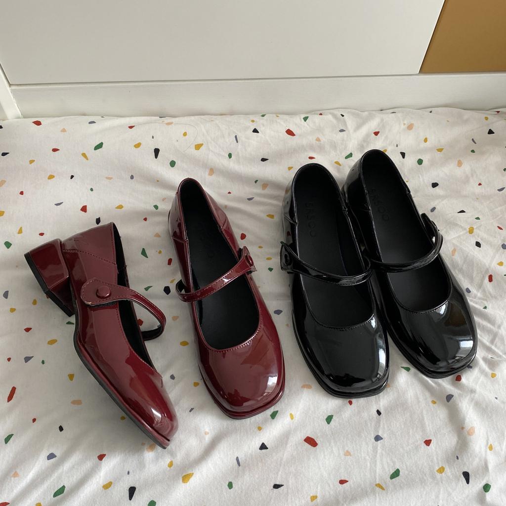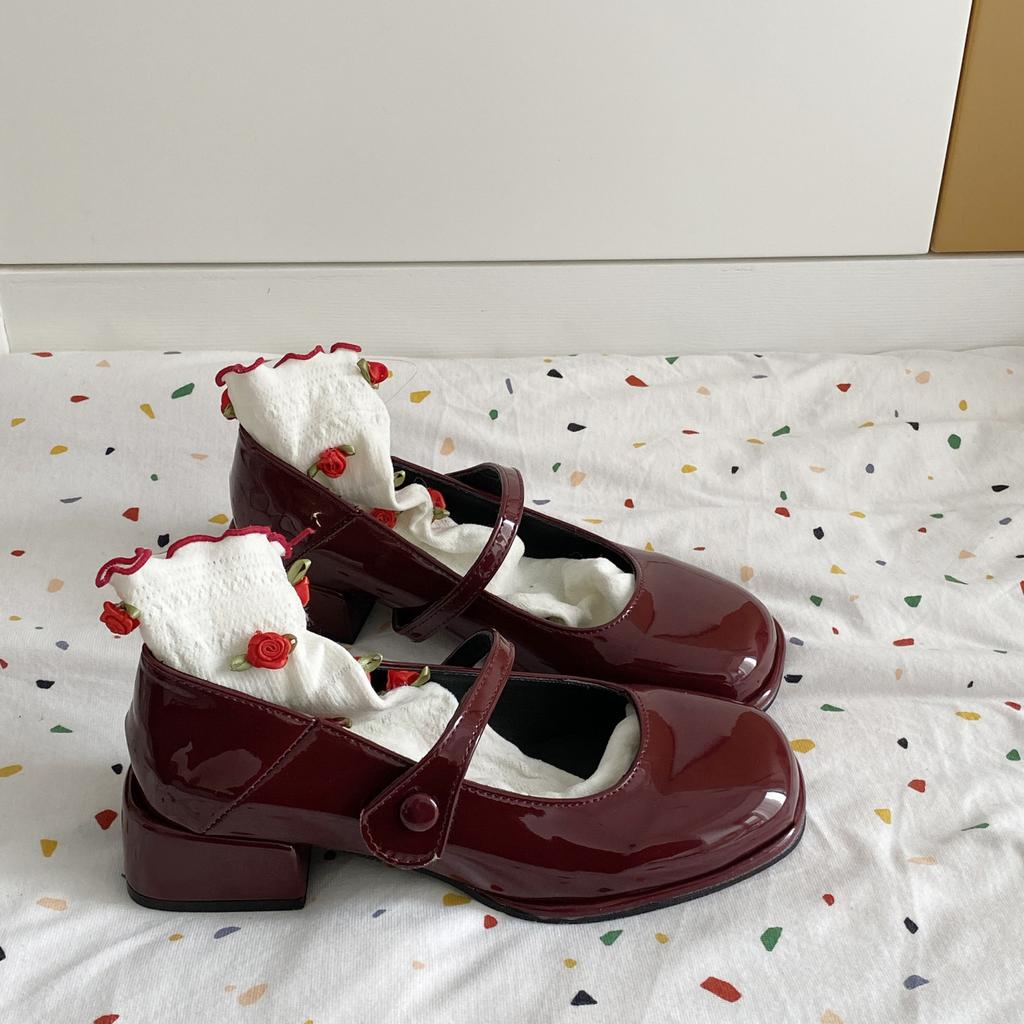 Французские ретро туфли Мэри Джейн Красные маленькие кожаные туфли Женские туфли с одним словом Пряжка Круглая головка Толстый каблук Маленькие ароматные одинарные туфли