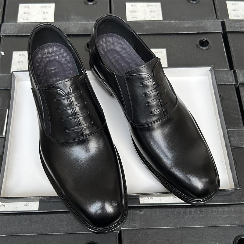 Высококачественные кожаные туфли мужские, облегающие деловые туфли из дышащей кожи для костюма, рабочие туфли с одной педалью, мужские кожаные туфли с деревянным корнем