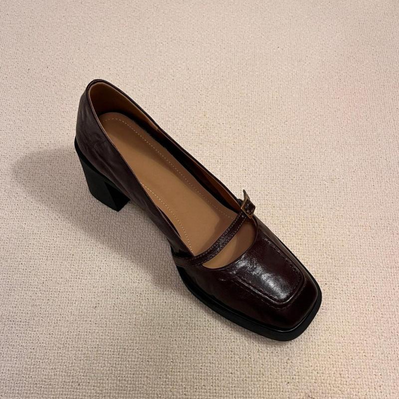 Туфли из мягкой овчины в стиле ретро с квадратной головкой и легким ртом на высоком каблуке, маленькие кожаные туфли на французском толстом каблуке, туфли Мэри Джейн, женская обувь