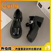 Черные туфли на толстом каблуке и платформе из кожи, женские весенние туфли Мэри Джейн с французским эффектом, короткие туфли на высоком каблуке