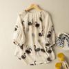 Летняя литература свободная хлопковая льняная рубашка с принтом V-образным вырезом и рукавами пять четвертей женская рубашка-пуловер
