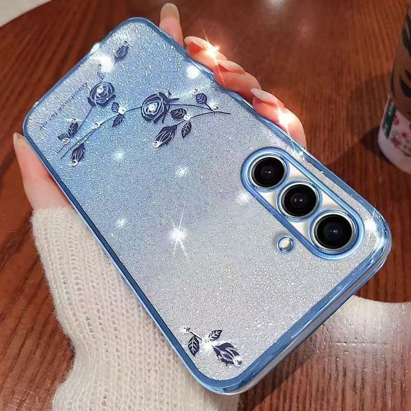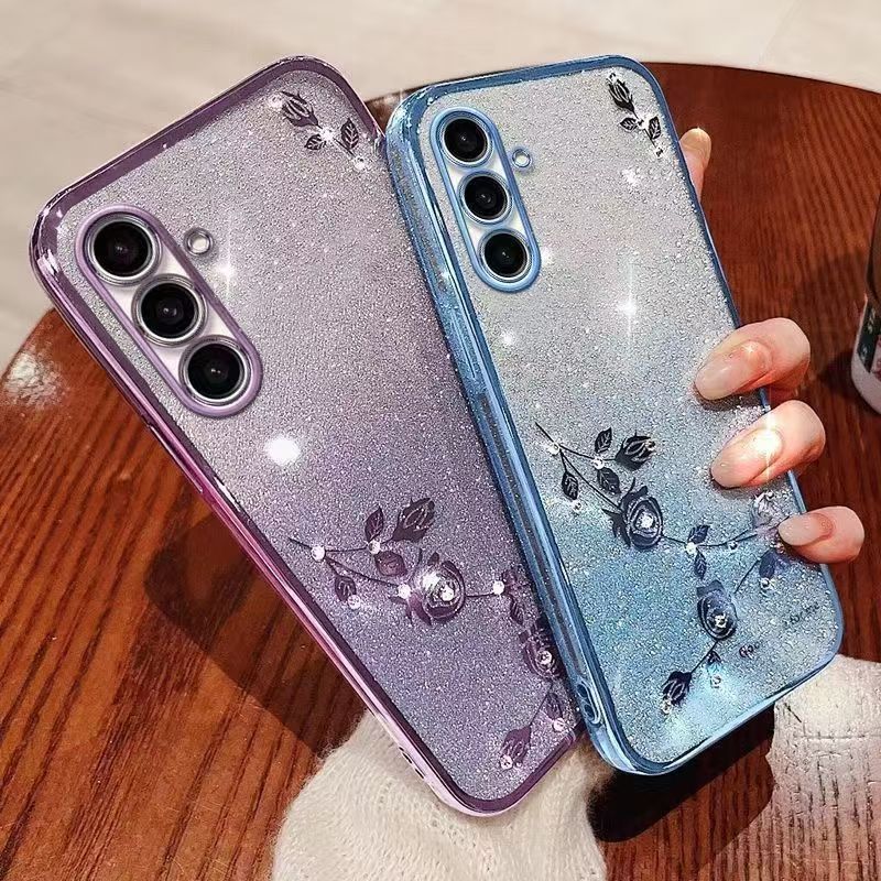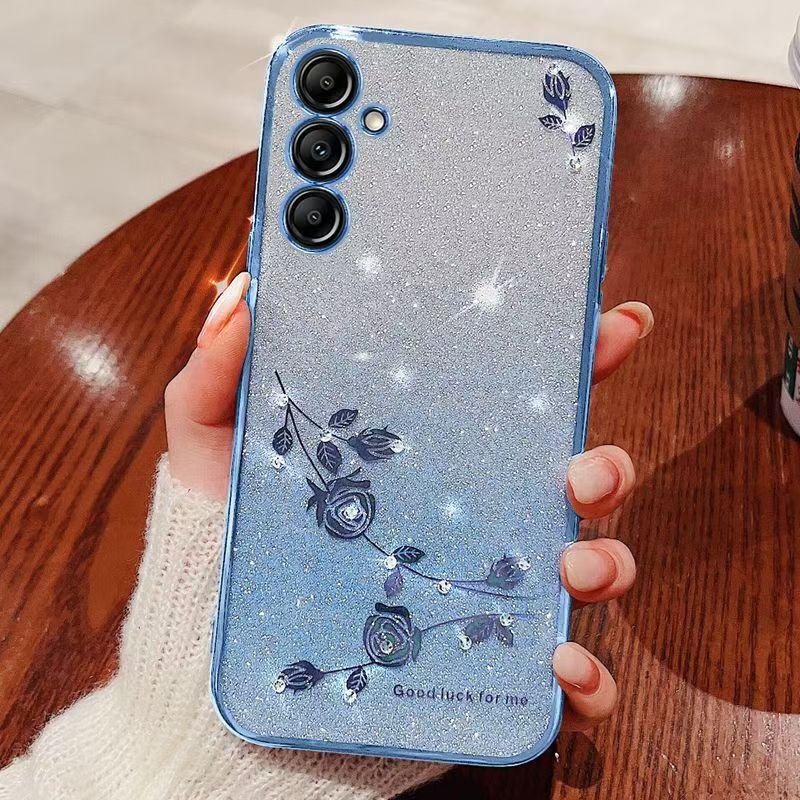 Чехол для телефона Samsung Galaxy A54, A34, A24, A14, A04s, Flash Pink Flower Прозрачный противоударный защитный чехол с роскошным бриллиантовым сиянием