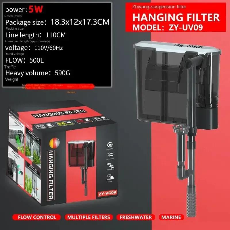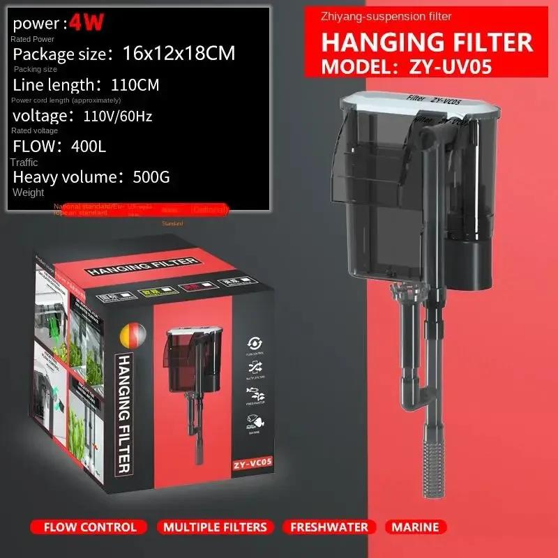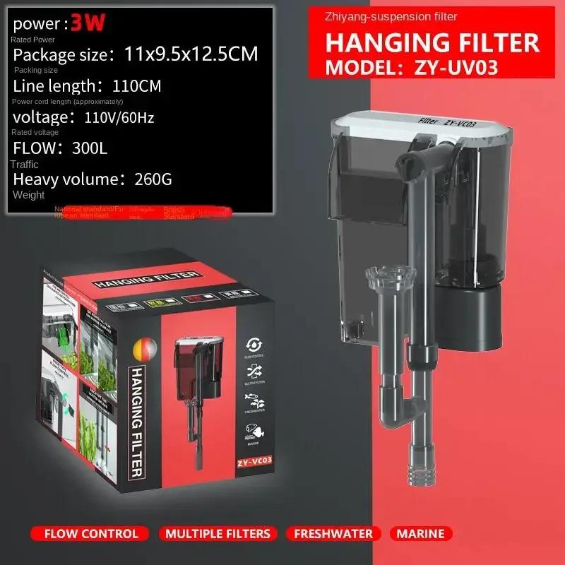 Настенный аквариумный внешний фильтр для аквариума, насос для водопада, подвесной фильтр с функцией удаления масляной пленки, регулируемая скорость потока