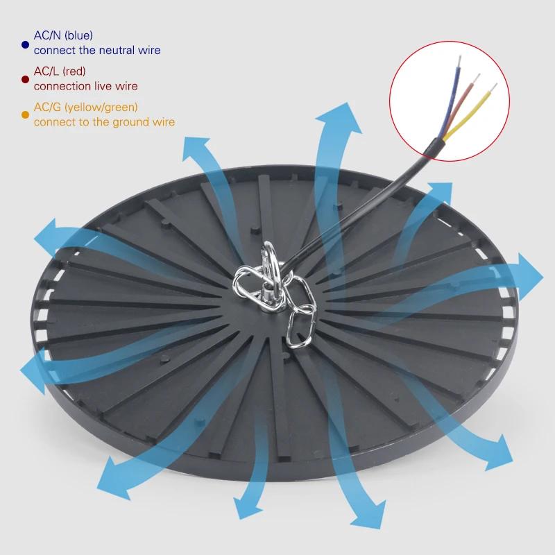 Супер яркое светодиодное промышленное освещение UFO Garage Lights 100W 150W 200W High Bay Lights IP65 Водонепроницаемый для спортзала, склада, завода
