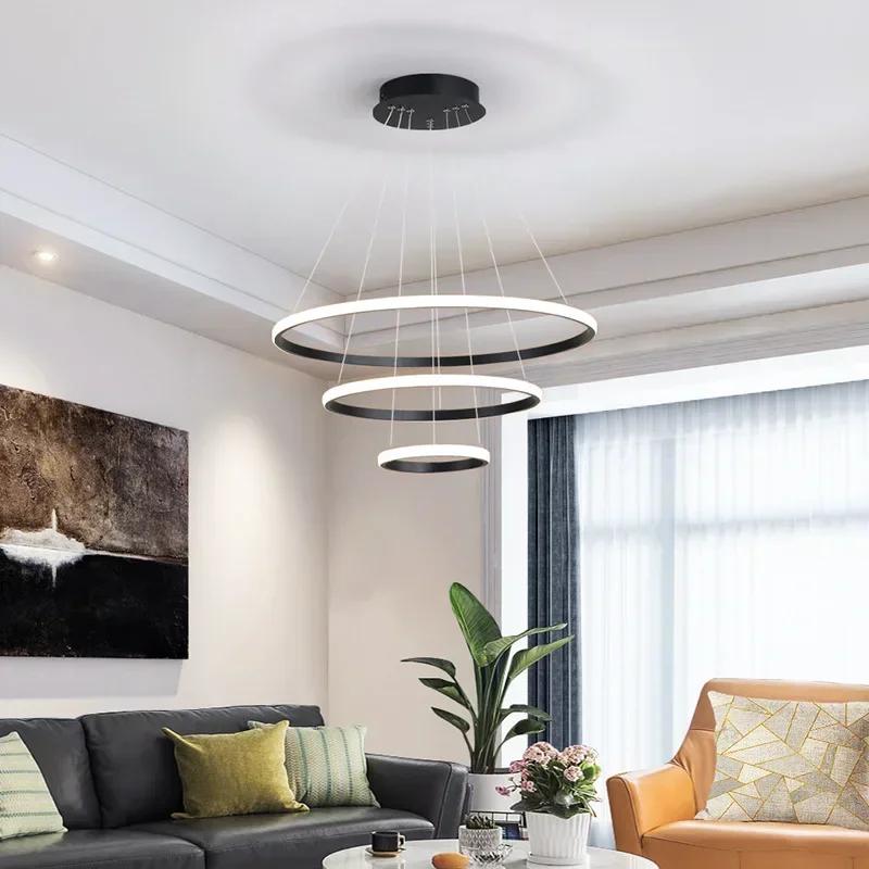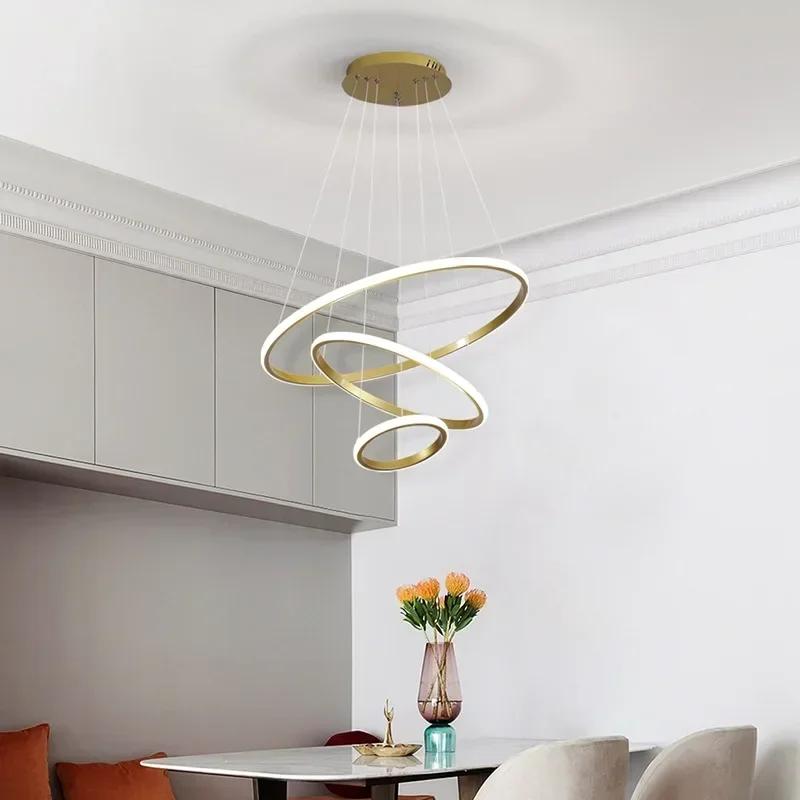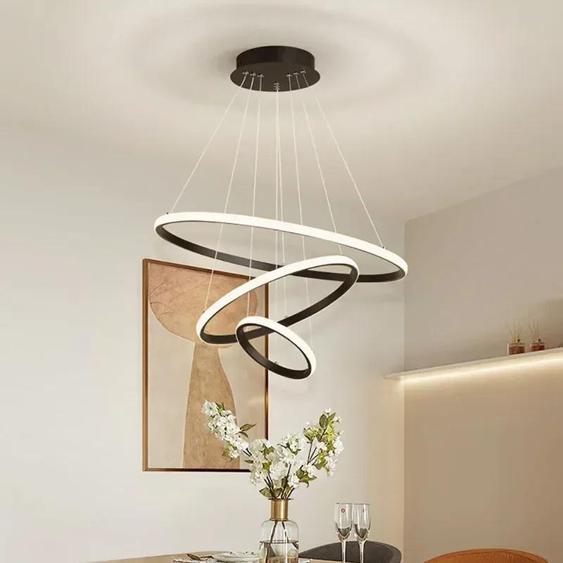 Современный светодиодный подвесной светильник для гостиной, столовой, спальни, люстры, кольца, круглый потолочный подвесной светильник, декоративное осветительное приспособление