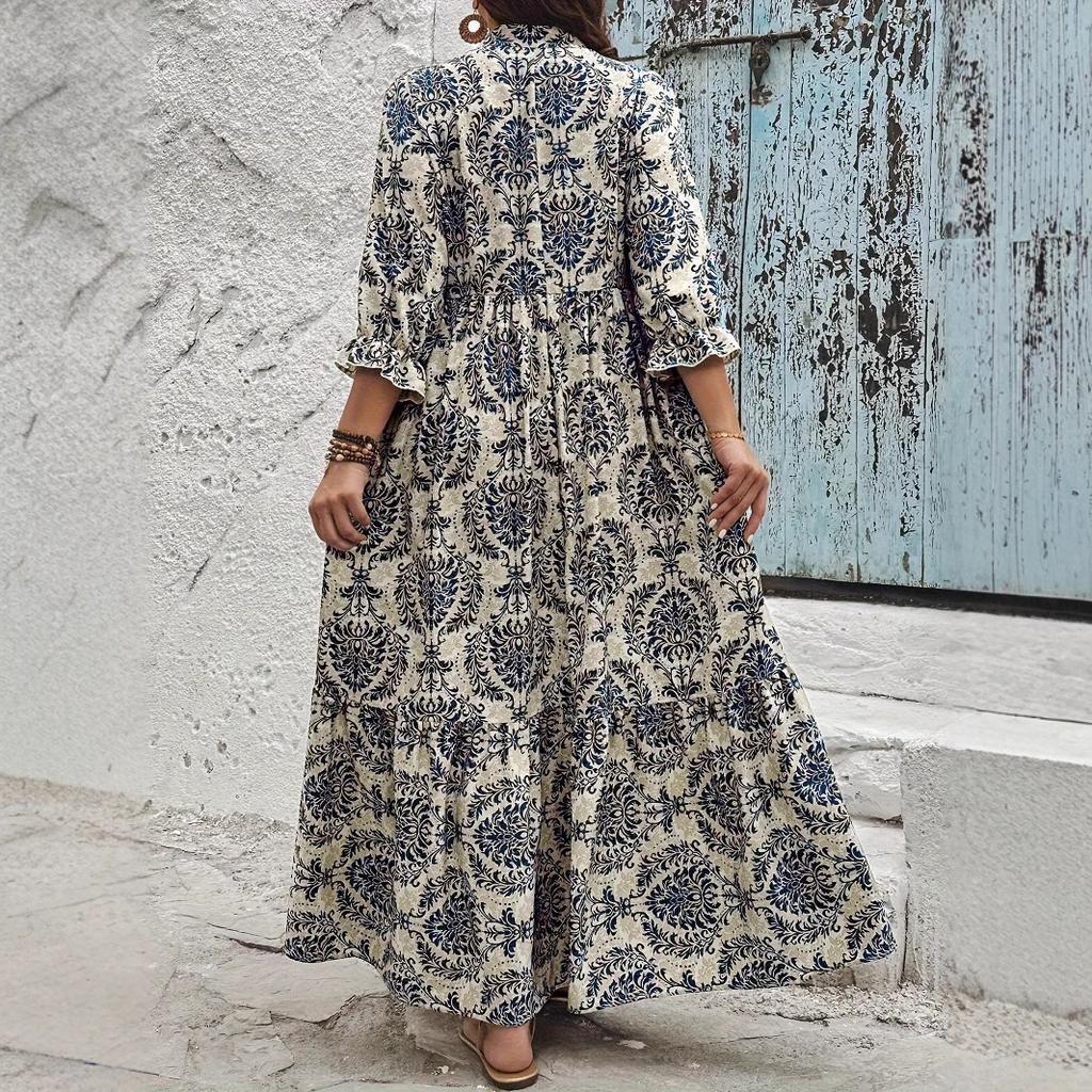 Плюс Размер Женщин Печатный V-образный вырез Модный All In One Праздничное Платье