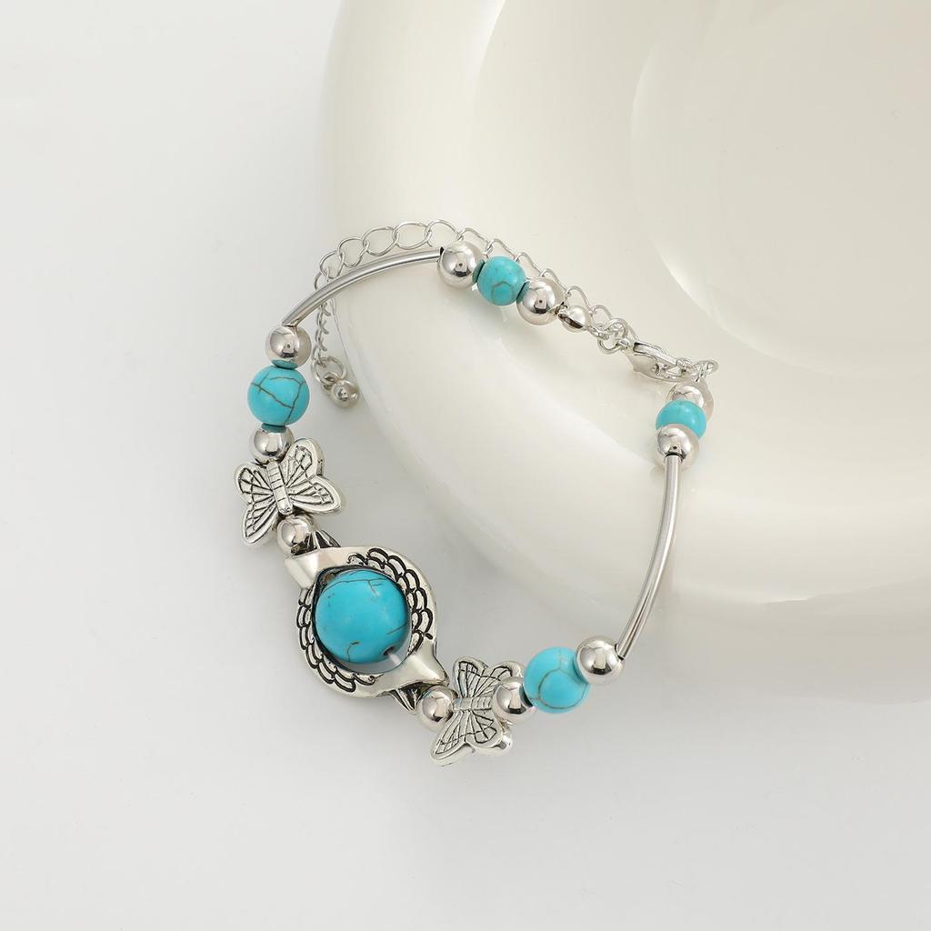 Браслет ручной работы с бирюзовыми бабочками и черепахами - европейский и американский стиль