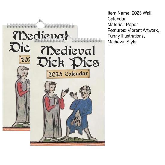 Стартер разговора: Выделитесь с календарем Medieval Dick Pictures 2025 — коллекцией юмористических и нетрадиционных произведений искусства, которые вызывают оживленные обсуждения и добавляют нотку причудливости любому пространству или мероприятию.