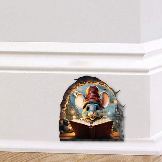 Творческая Атмосфера: Преобразите свое пространство с помощью этой очаровательной настенной наклейки с изображением мультяшной мыши, на которой изображена мышь, читающая книгу или выглядывающая из норки. Она создаст в вашем доме творческую и креативную атмосферу.