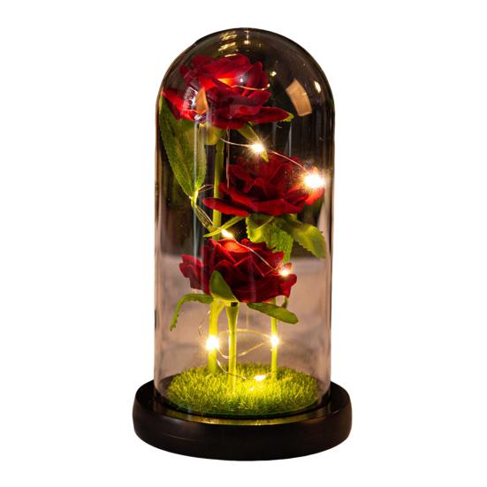 ДИСПЛЕЙ ROSE С УЛУЧШЕННОЙ СВЕТОДИОДНОЙ ПОДСВЕТКОЙ: Стеклянный купол, украшенный светодиодными лентами, излучает теплый белый свет и работает от трех батареек типа ААА. (не включено). Эти светодиодные розы идеально подходят для создания романтической атмосферы и являются универсальными украшениями, подходящими для домашнего декора или особых мероприятий.