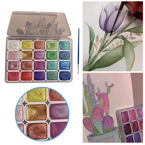 Украсьте свои акварельные шедевры частичкой волшебства! В наш набор акварельных красок «Трансформация» входят 20 и 24 ослепительно блестящие акварельные краски, которые сверкают при преломлении света, добавляя завораживающее измерение вашим работам.