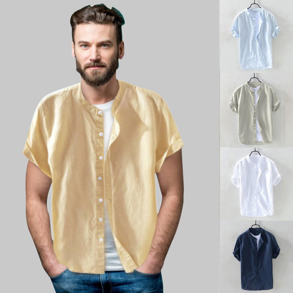 Мужские мешковатые хлопковые льняные однотонные футболки с короткими рукавами и пуговицами в стиле ретро, топы, блузки — купить товар онлайн с бесплатной доставкой по всему миру!