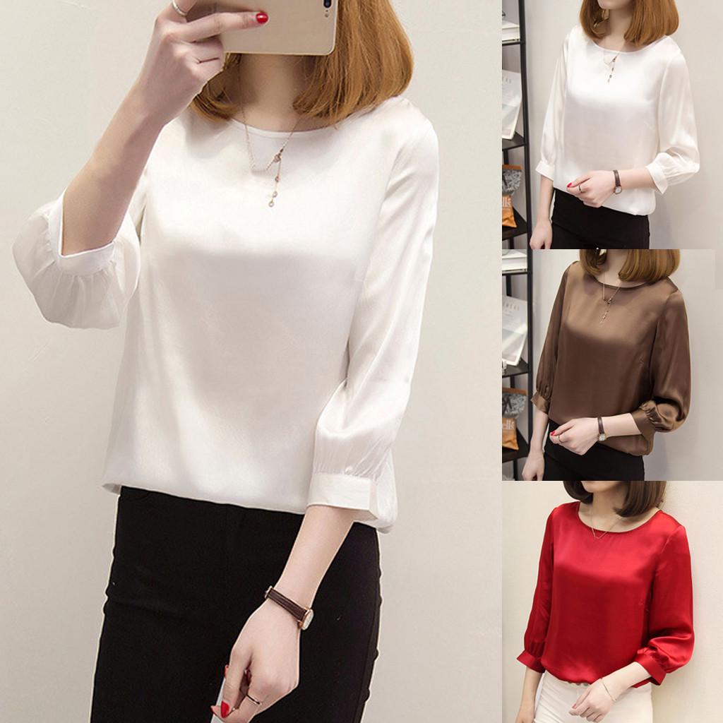 Женские короткие офисные рабочие рубашки, повседневные топы с рукавами три четверти