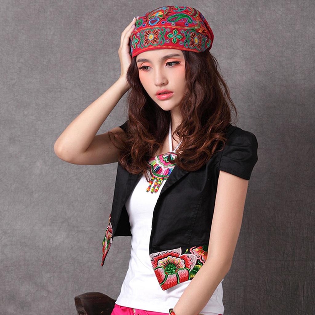 Женские банданы в мексиканском стиле в этническом винтажном стиле с вышивкой и цветами, красная шляпа с принтом