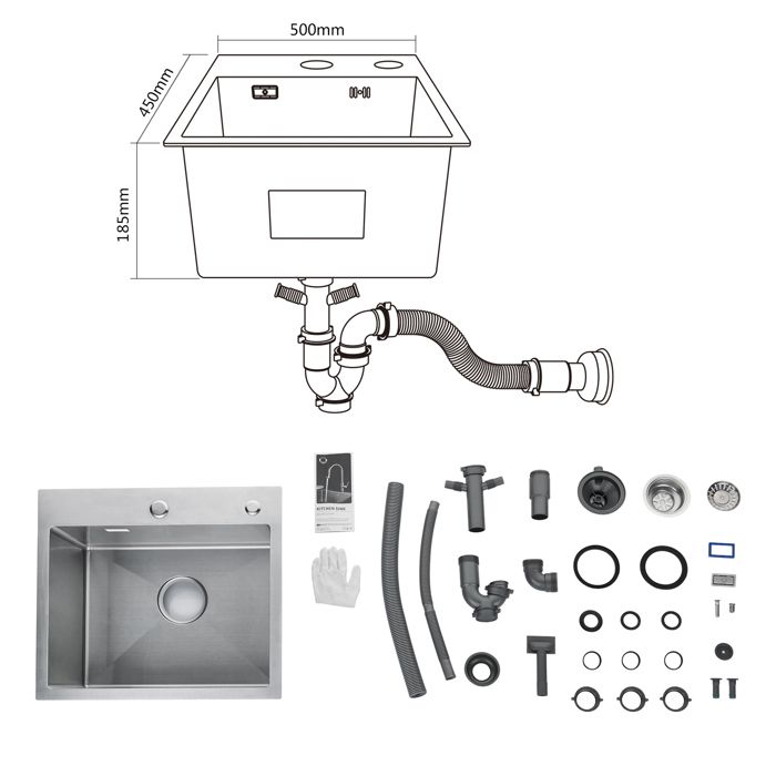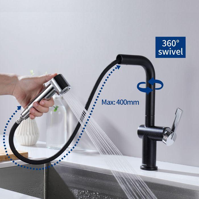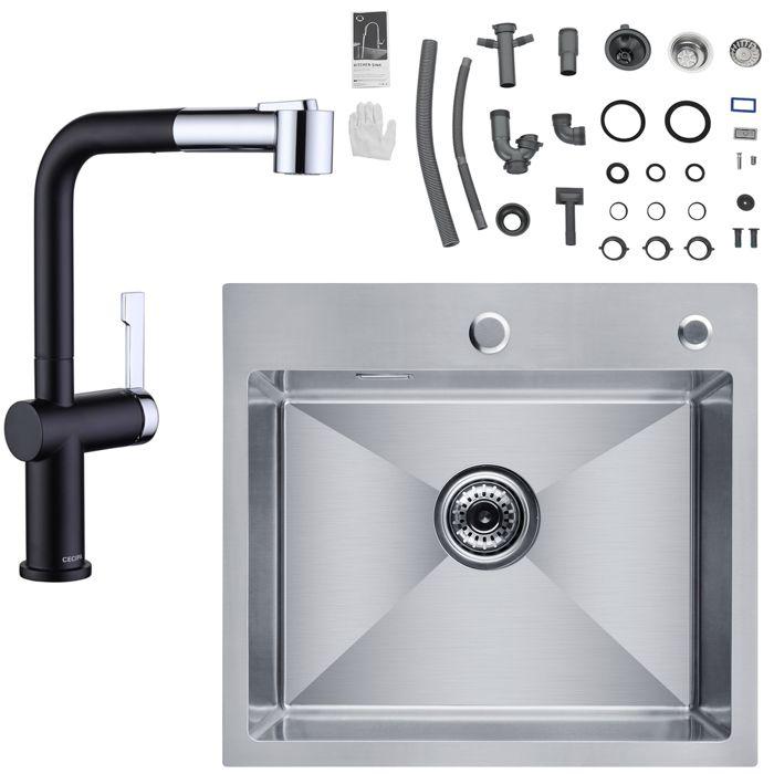 Cecipa Évier de Cuisine 1 Bac, 50 x 45 x 18,5 cm + Robinet de Cuisine Extractible, Noir + Galvanique, Avec 2 modes de sortie d'eau