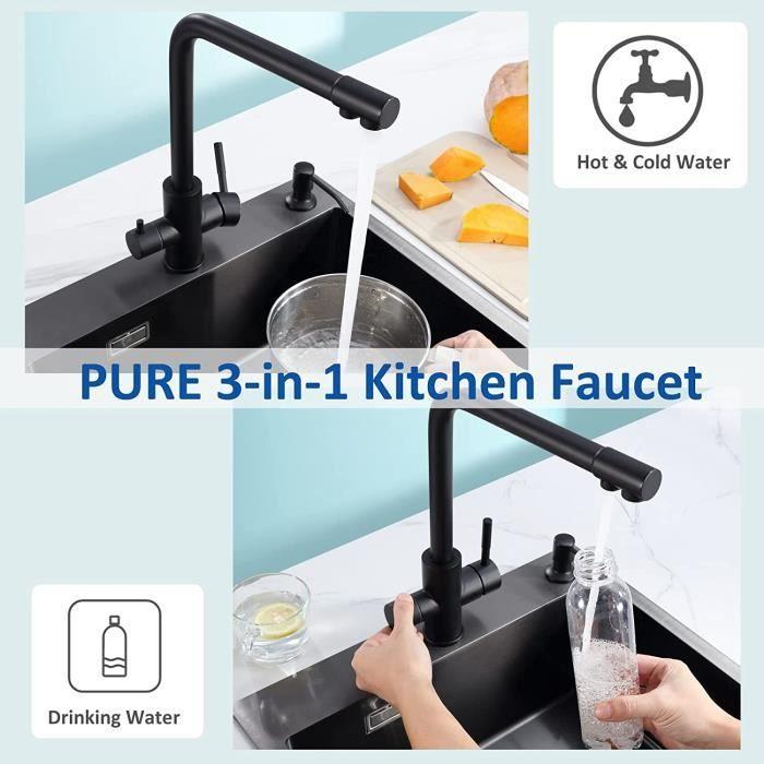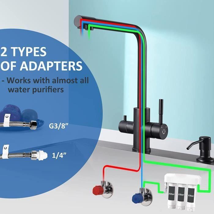 Cecipa Robinet de Cuisine, 3 en 1 Mitigeur de Cuisine pour Système D'osmose, Robinet D'eau Propre avec 2 Leviers de Comman