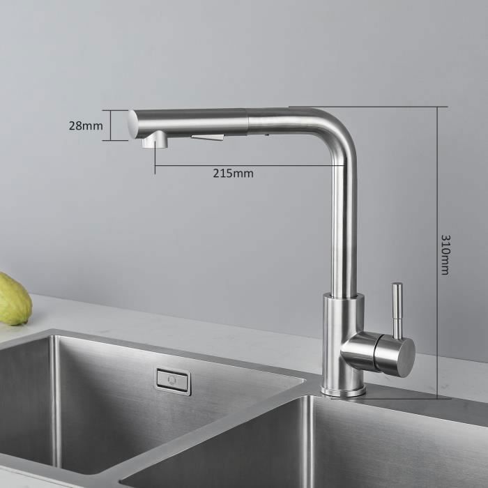 Robinet Mitigeur de cuisine Extractible en Acier Inoxydable - CECIPA - Pivotant - Brillant - Chrome