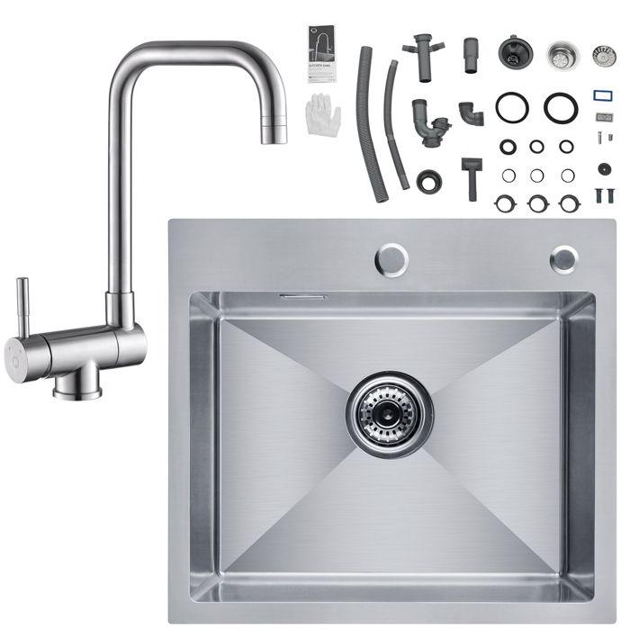 Кухонная мойка - CECIPA - 50 x 45 x 18,5 см - Квадратная - Хромированный кухонный смеситель - 2 струи на выбор — купить товар онлайн с бесплатной доставкой до всему миру!