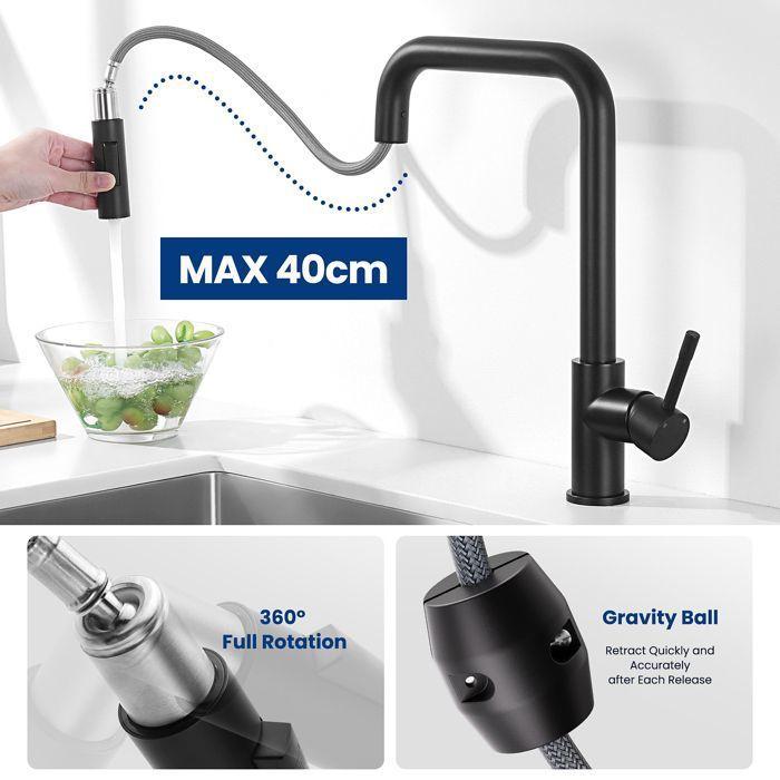 Mitigeur de cuisine - CECIPA - Noir - Acier inoxydable - Rotatif 360° - 2 fonctions de jet