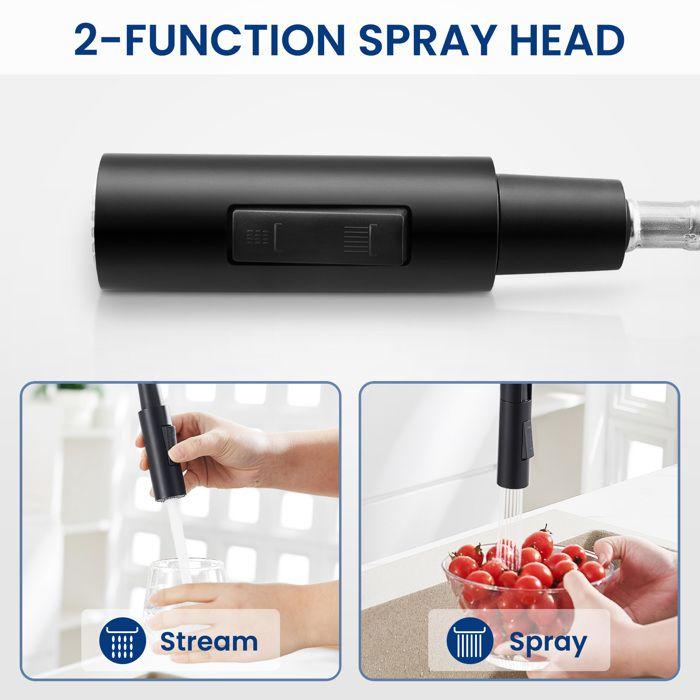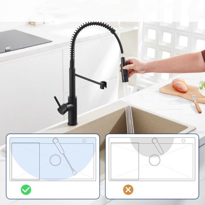 Robinet de cuisine mitigeur - CECIPA - Noir - Acier inoxydable - Rotatif 360° - Économie d'eau