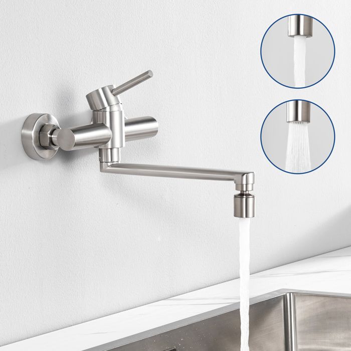 Настенный кухонный смеситель - CECIPA - Матовая нержавеющая сталь - 2 режима струи - Поворотный на 360° - Экономия воды