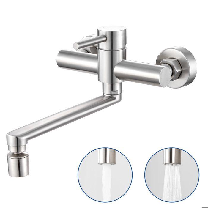 Mitigeur de cuisine mural - CECIPA - Acier inoxydable - Brossé - 2 trous - Pivotant