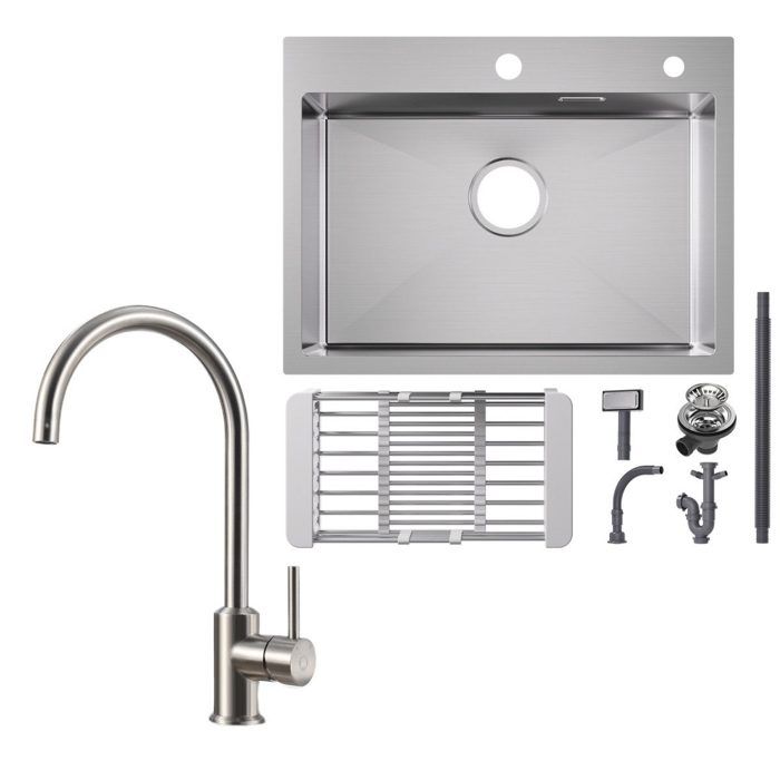 60x45cm Évier de Cuisine 1 Bac,Égouttoir+mitigeur de cuisine Brossé