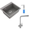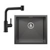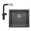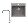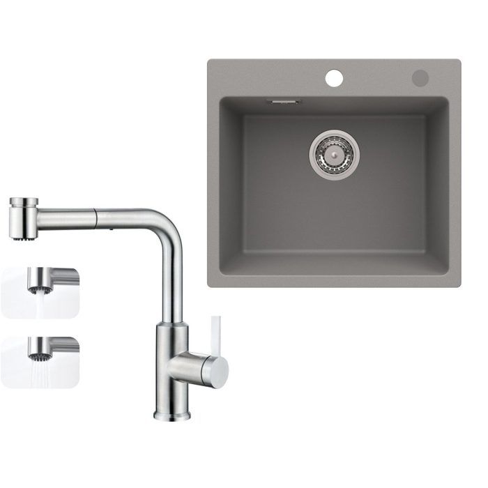 50x45cm Évier de Cuisine en granit A poser Gris+mitigeur extractible Brossé