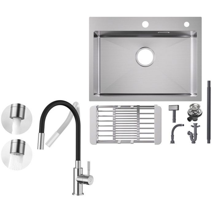 60x45cm Évier de Cuisine a poser,Égouttoir Brossé+mitigeur pliant — купить товар онлайн с бесплатной доставкой до всему миру!