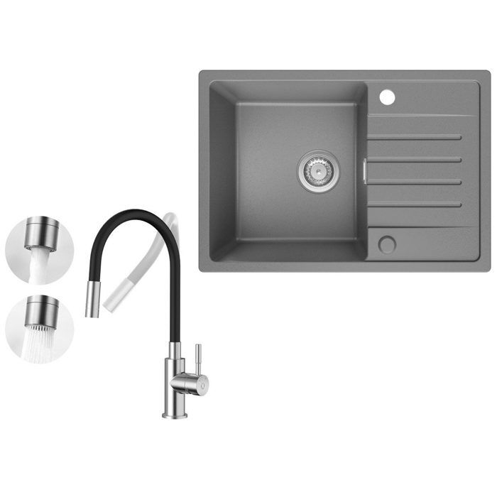 65x45cm Évier de Cuisine en granit avec égouttoir+mitigeur pliant