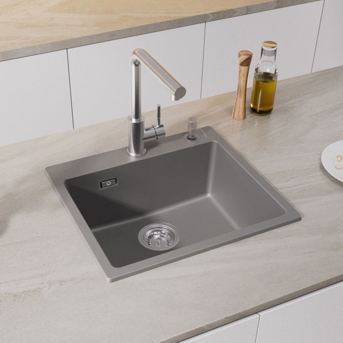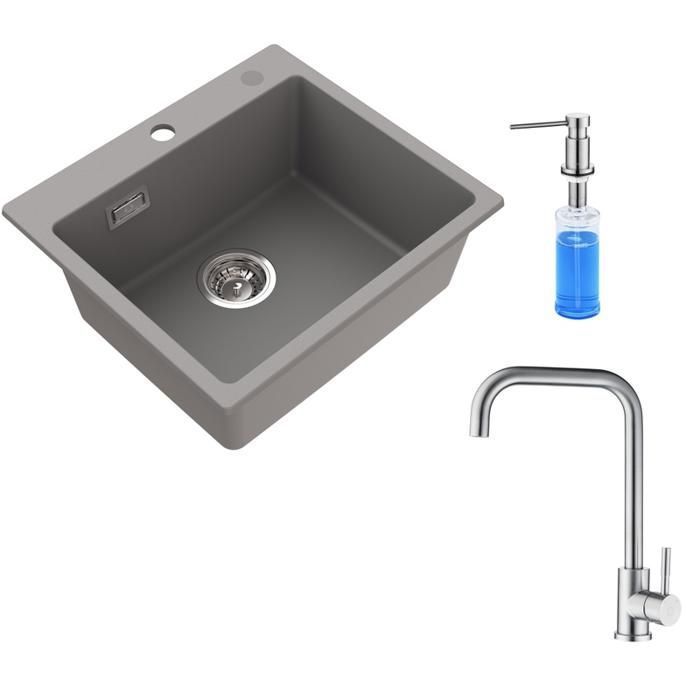 Évier en granit Gris 50×45cm,Robinetterie cuisine,distributeur de savon