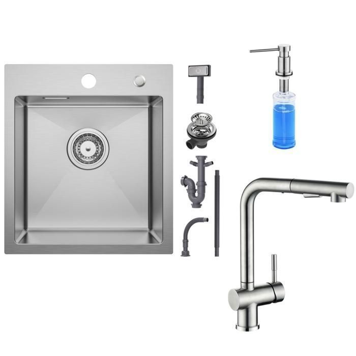 EVIER DE CUISINE Brossé inox 40×45cm,Mitigeur de cuisine extractible,distributeur de savon