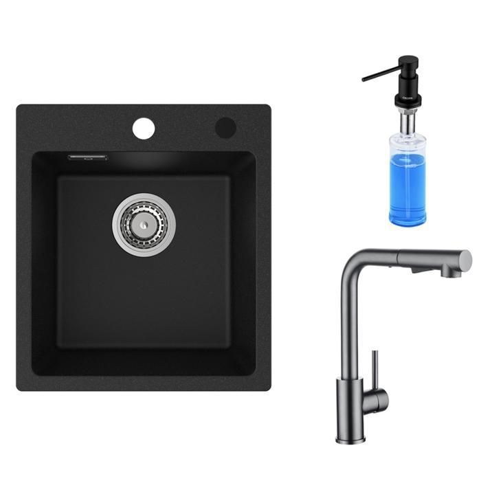 Гранитная мойка 40х45см, выдвижной кухонный смеситель, дозатор мыла.