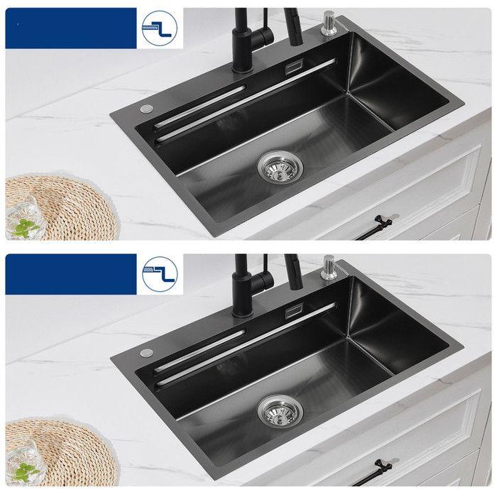 Évier de cuisine - Inox - 70x45cm - 1 bac - Sans égouttoir - Brossé