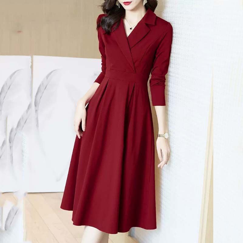 Осенне-зимние костюмные платья женские с вырезом на молнии корсетные винтажные темпераментные модные длинные платья А-силуэта с длинными рукавами