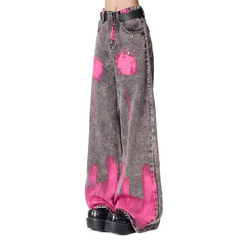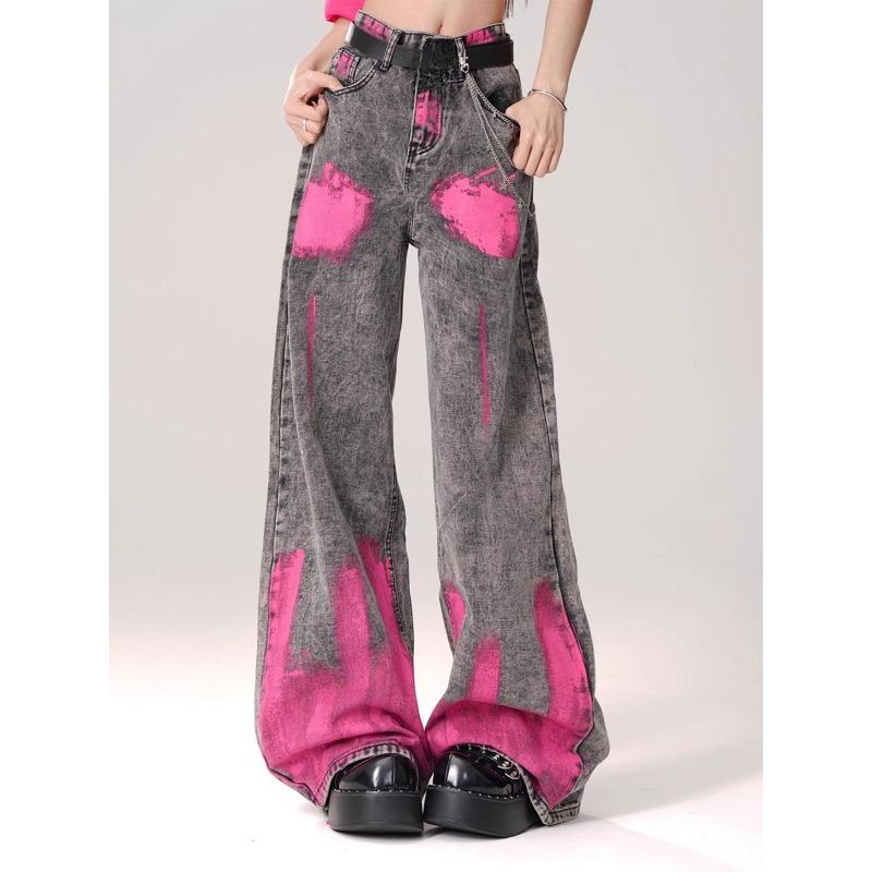 Американские джинсы High Street Graffiti Design Y2k, стильные винтажные широкие брюки для женщин, летние новые джинсы в стиле хип-хоп для женщин