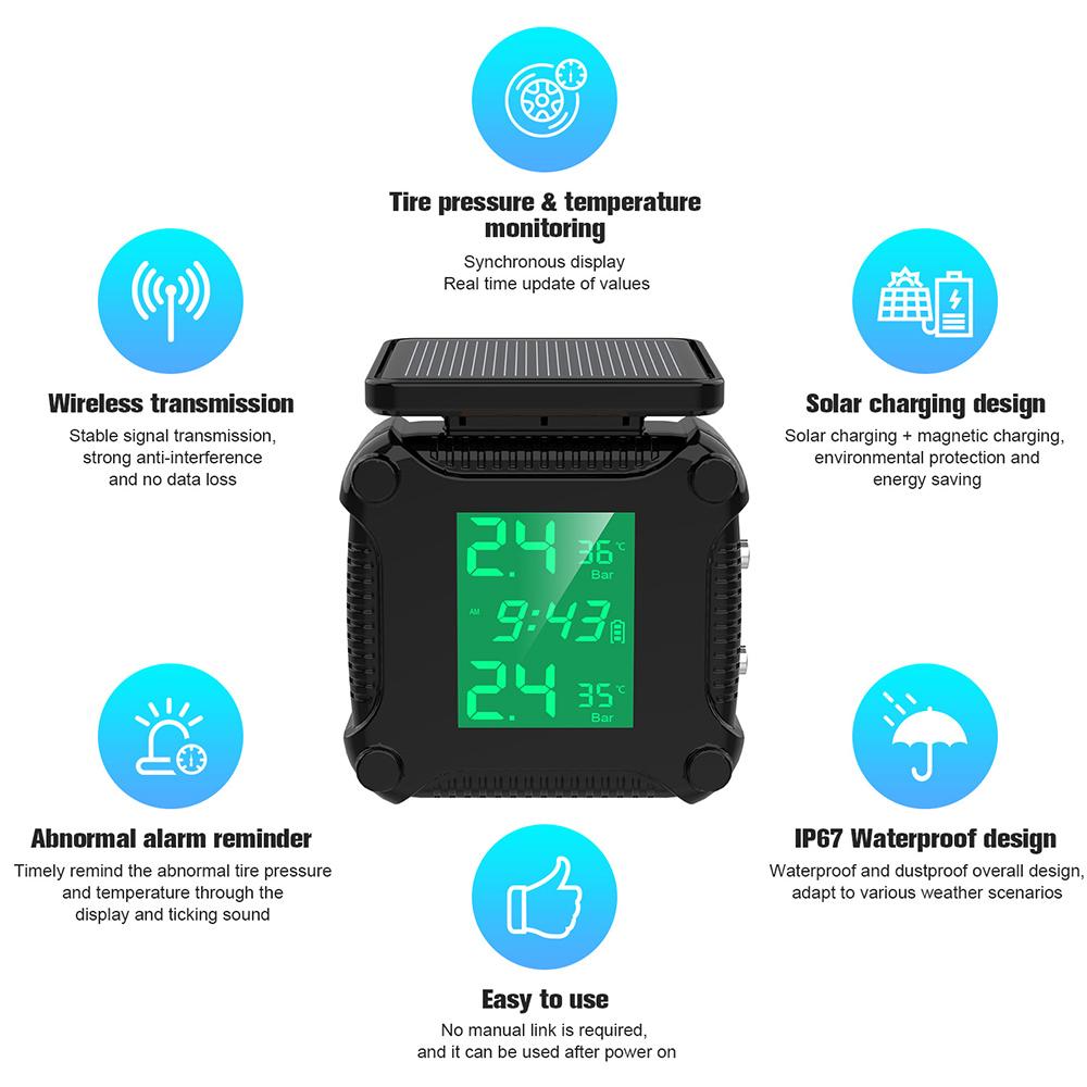 Солнечная батарея TPMS мотоцикл 2 датчика система контроля давления в шинах тестер шин сигнализация предупреждение питбайк аксессуары для мотоцикла