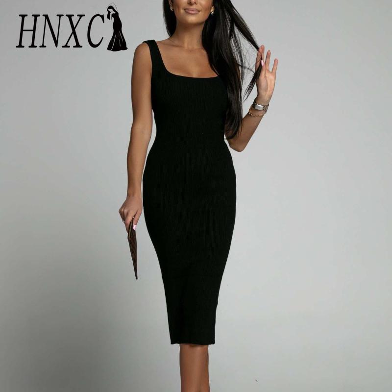 HNXC Женская мода лето весна сплошной цвет печати без рукавов U-образным вырезом повседневные платья