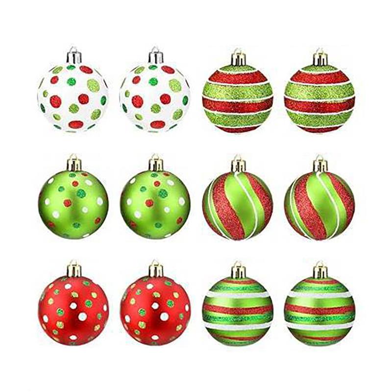 1.Рождественский набор: Вы получите 12 шт. новогодних шаров размером 2,36 дюйма, трех цветов: красного, зеленого и белого, 6 разных стилей, каждый стиль представлен двумя шарами, достаточное количество и стиль на выбор, вы сможете лучше выполнить рождественское украшение, привнести сильную атмосферу в ваш праздник.